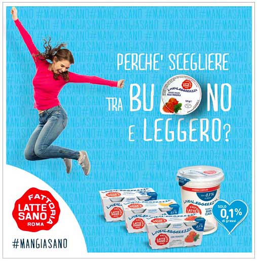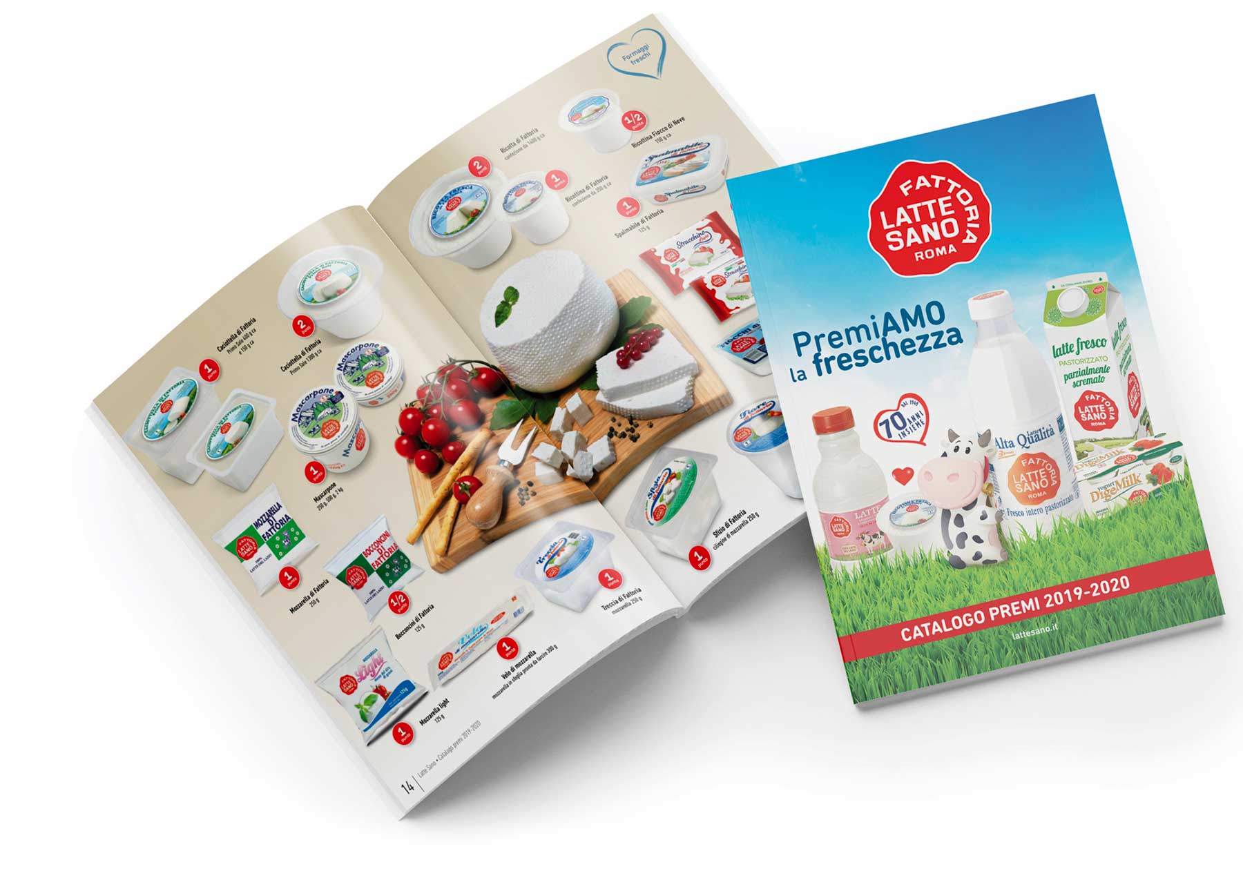 Per la Fattoria Latte Sano, storica azienda romana produttrice di latte e derivati, seguiamo il piano social e curiamo l’ideazione e la realizzazione di materiali stampa legati a progetti specifici: catalogo premi 2019/2020, locandine promozionali, livree autocisterne, allestimenti.