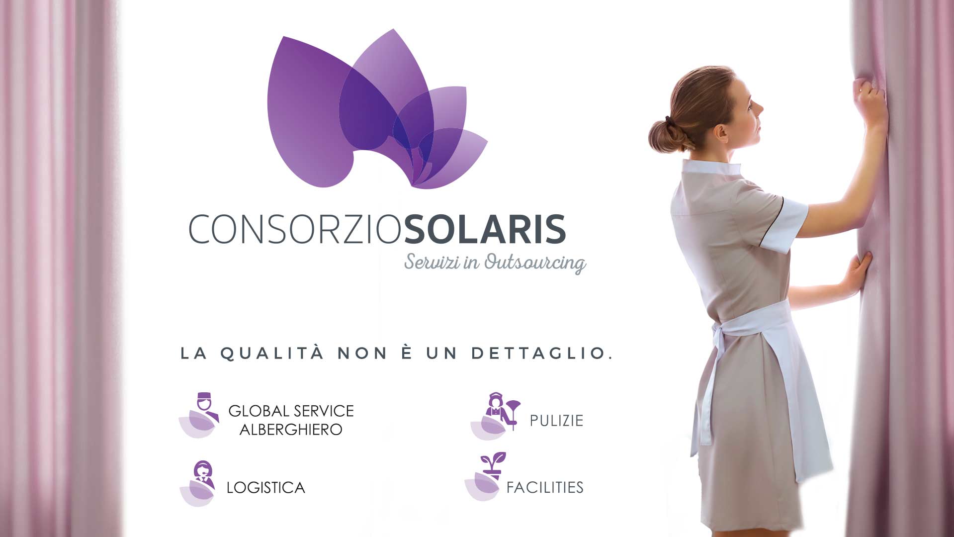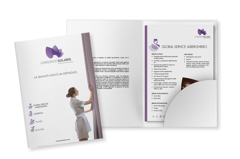 Per Consorzio Solaris, azienda specializzata in servizi di “outsourcing” dedicati alle strutture alberghiere, abbiamo realizzato alcune campagne stampa e diversi materiali BTL.
